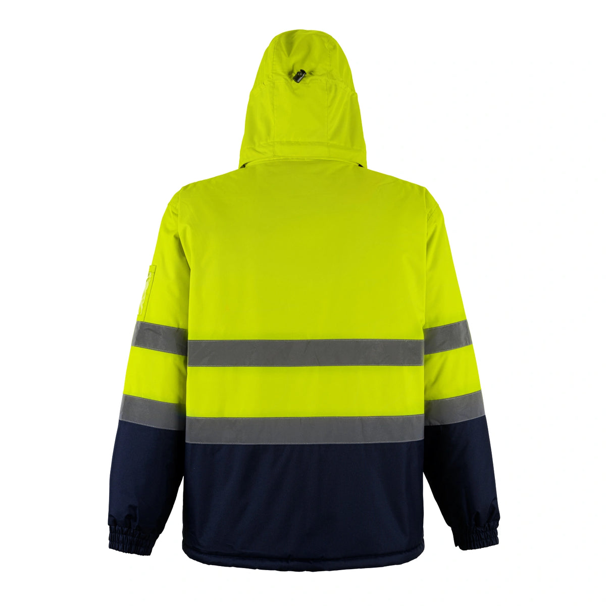 Parka Nebraska S10 bicolor impermeable con costuras termoselladas y forro de polar, posee cintas reflectivas 360° puños elasticados ajustable con velcro, gorro ajustable y desmontable registro ISP EPP4043